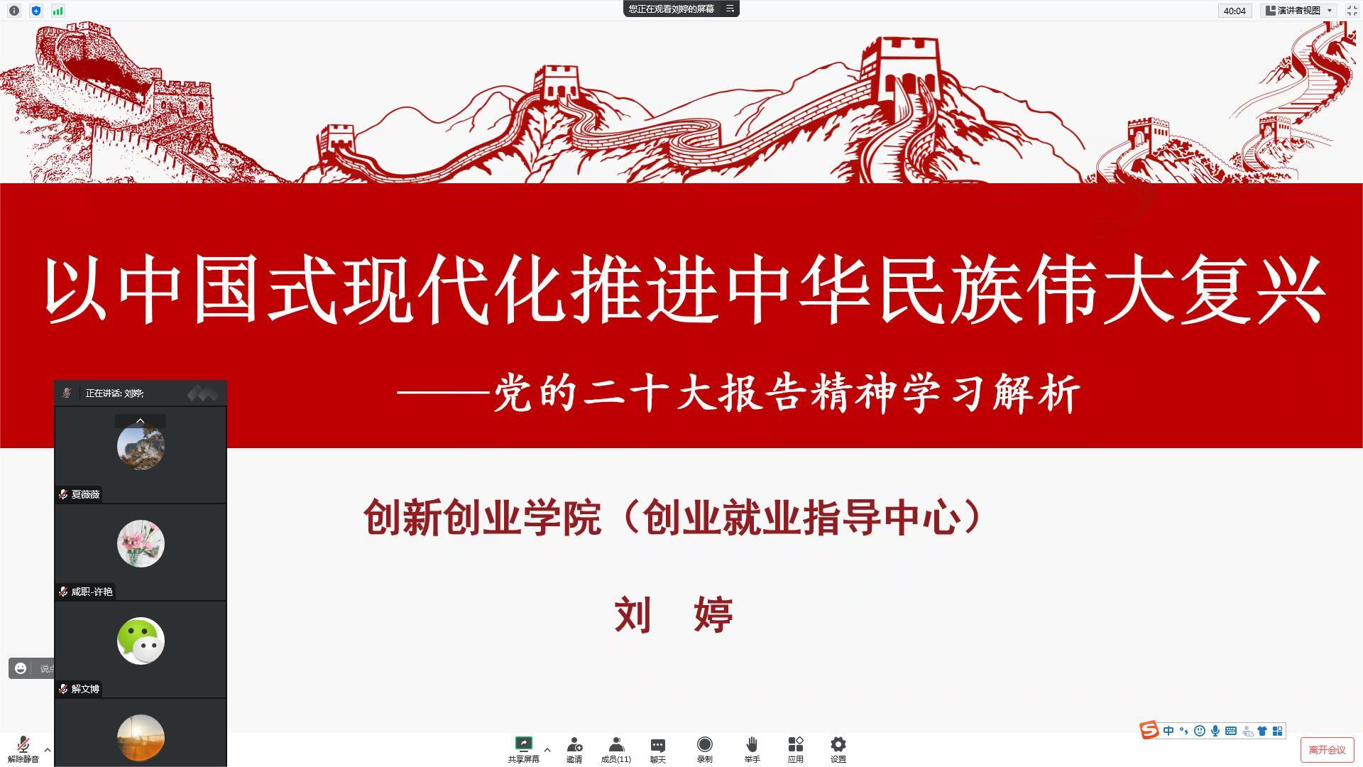 11月26-11月27日,根据学校党委统一部署,结合疫情防控需要,创新创业学院直属党支部召开线上学习会议,专题传达党的二十大精神专题读书班活动通知,组织学院全体教职工在线观看直播、专人领学党的二十大报告原文、支部书记在线宣讲党的二十大精神、党员交流学习心得,掀起学习贯彻党的二十大精神的热潮。