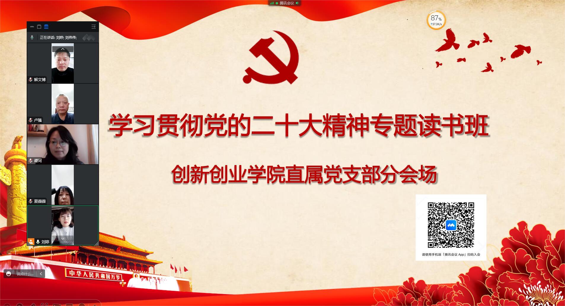 图1 党的二十大精神专题读书班-创新创业学院分会场学习截图