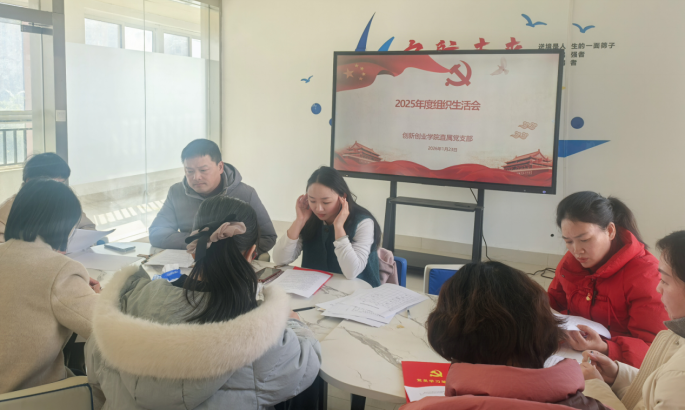 1月23日下午,创新创业学院直属党支部在大学科技园205办公室召开 2025年度组织生活会。会议由支部负责人余敏主持,支部全体党员参加,副院长夏薇薇列席会议并参与群众评测。本次会议以“深入学习贯彻习近平新时代中国特色社会主义思想,全面贯彻落实党的二十届四中全会精神和习近平总书记湖北考察、亲临咸宁重要讲话精神”为主题,聚焦作风建设与学校“三校”建设目标,推动党员干部转作风、树新风,为学校高质量发展凝聚力量。